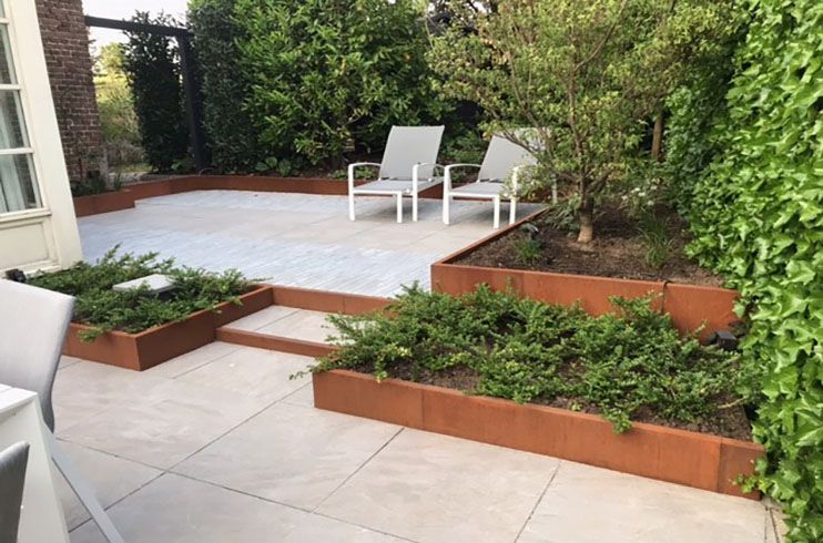 Otra ventaja del acero corten es su durabilidad. El acero corten resiste el agua e incluso puede utilizarse parcialmente en el suelo. Esto lo hace ideal para diversas aplicaciones en el jardín. Tanto si desea utilizar jardineras de acero corten para acentuar sus flores y plantas favoritas, bordes de acero corten para delinear su césped o caminos, o cuencos de fuego de acero corten, almacenes de madera o peldaños para añadir un elemento visual a su espacio exterior, el material conservará su encanto independientemente de las condiciones meteorológicas.