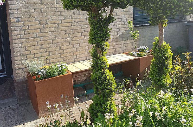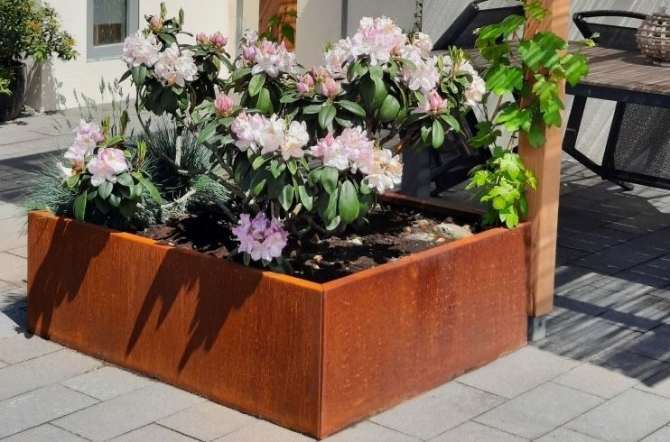 Pero, ¿qué se puede hacer exactamente con el acero corten en el jardín ? Las posibilidades son infinitas. Pensemos, por ejemplo, en las jardineras de acero corten. No sólo son funcionales, sino también un elemento decorativo en el jardín. El cálido color óxido del acero hace que sus plantas destaquen aún más. Además, el acero corten ofrece una excelente durabilidad, por lo que las jardineras de acero corten duran años sin tener que ser sustituidas. El material también puede fabricarse a medida, por lo que es perfecto para cualquier estilo y distribución de jardín.