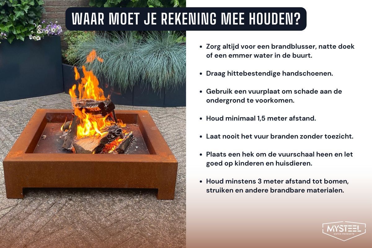 Para disfrutar de los cuencos de fuego de acero corten de forma segura, es importante tomar algunas precauciones:
