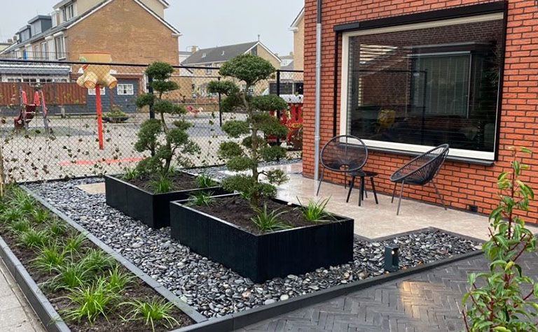 - Disposiciónespacial: Las jardineras pueden utilizarse para crear distintas zonas en el jardín y organizar el espacio. Definen caminos, terrazas y bordes, creando una sensación de estructura y orden.