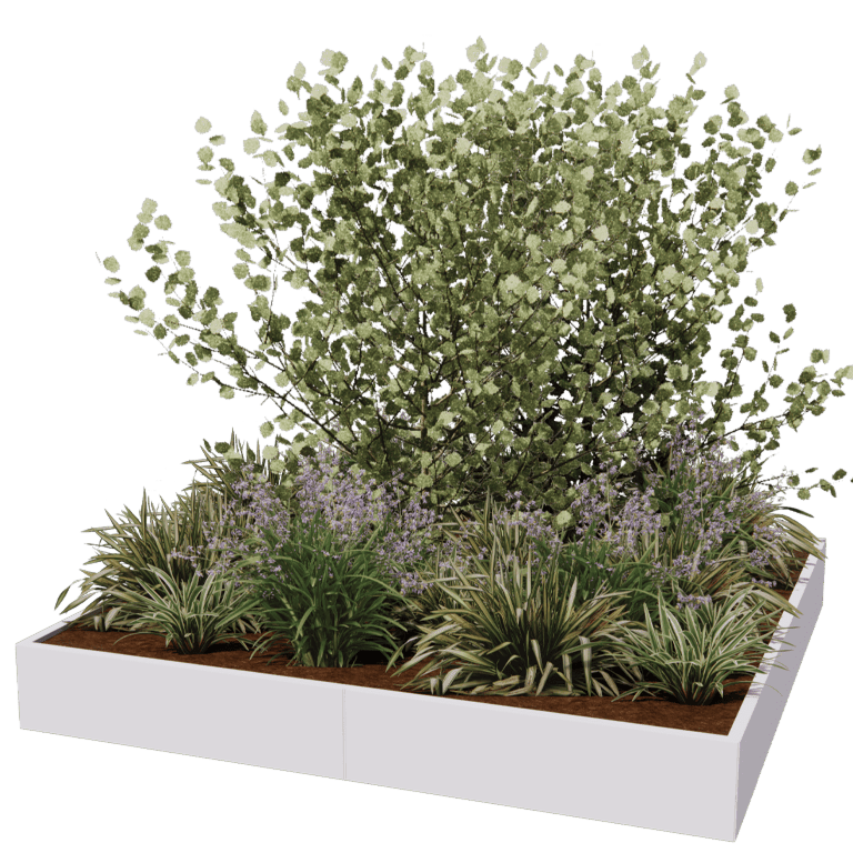 Esta jardinera está fabricada con un sistema modular que permite su suministro en forma de paquete para montar. La jardinera está formada por paneles y elementos angulares sueltos. Este sistema modular permite un montaje sin elementos de fijación a la vista. Nuestro sistema modular también permite dimensiones muy grandes. Con los elementos angulares se pueden conseguir formas imposibles de conseguir en ningún otro sitio. Consulte el manual del usuario si desea más información.
