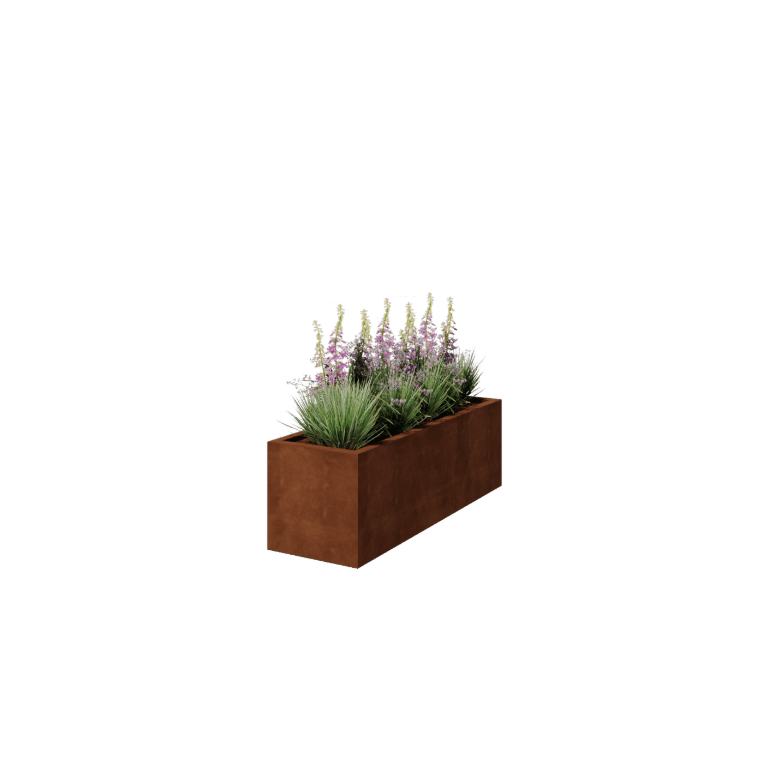 La jardinera soldada de acero corten Montana es una jardinera robusta y, como su nombre indica, está totalmente soldada. Esto significa que la jardinera está formada por una sola pieza.