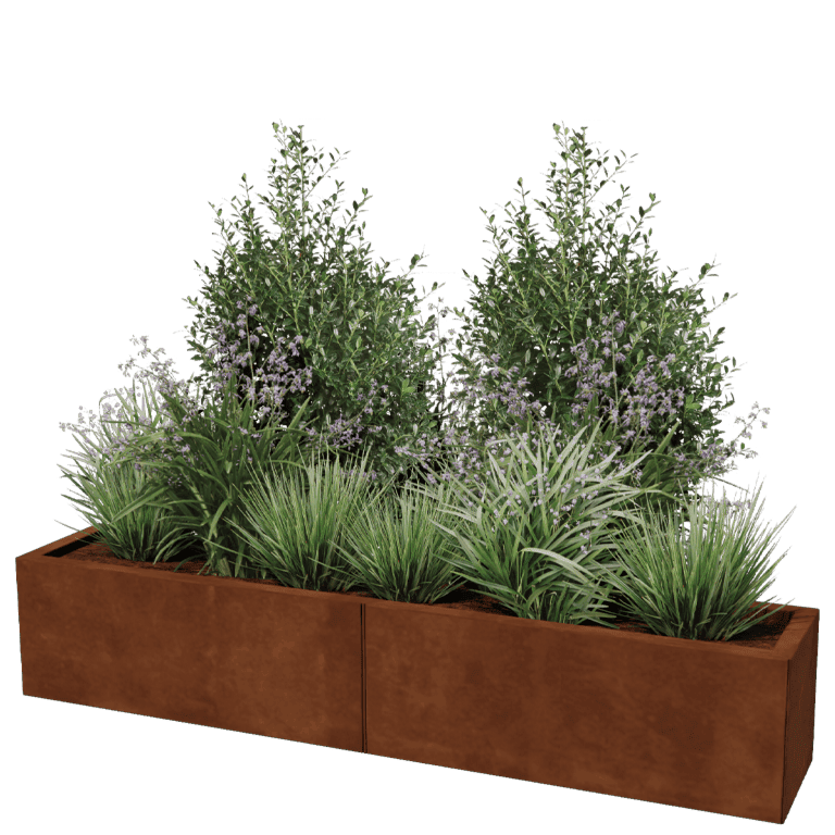 Material Estas jardineras están fabricadas con plancha de acero Corten A de alta calidad. Este tipo de metal se caracteriza por la capa de óxido especialmente densa que se forma en su superficie, que impide la oxidación progresiva del interior. La densa capa de óxido protege el interior del material contra el oxígeno, retrasándose enormemente el proceso de oxidación, al tiempo que la corrosión sí progresa. La jardinera de acero corten se entrega sin óxido, con el color gris propio del metal. La capa marrón/naranja del óxido va formándose durante las siguientes semanas o meses. No se requiere tratamiento para ello. Durante el proceso de oxidación la jardinera puede manchar de óxido. El acero corten es una aleación metálica de hierro con cobre, fósforo, silicio, níquel y cromo.