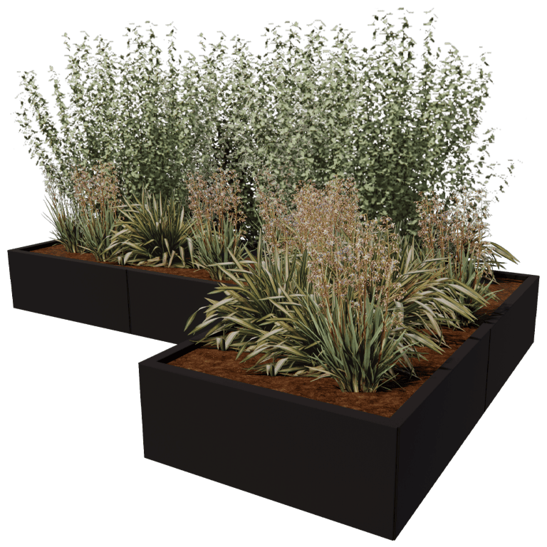 Esta jardinera es una jardinera modular de acero que se entrega en kit. La jardinera se construye a partir de paneles y piezas angulares independientes. Las jardineras se pueden conectar completamente a ciegas. No hay elementos de fijación a la vista. Gracias a nuestro sistema modular, también son posibles dimensiones muy grandes. Mediante el uso de piezas angulares, se pueden conseguir formas únicas que no están disponibles de serie en ningún otro sitio. Consulte el manual para obtener más información.