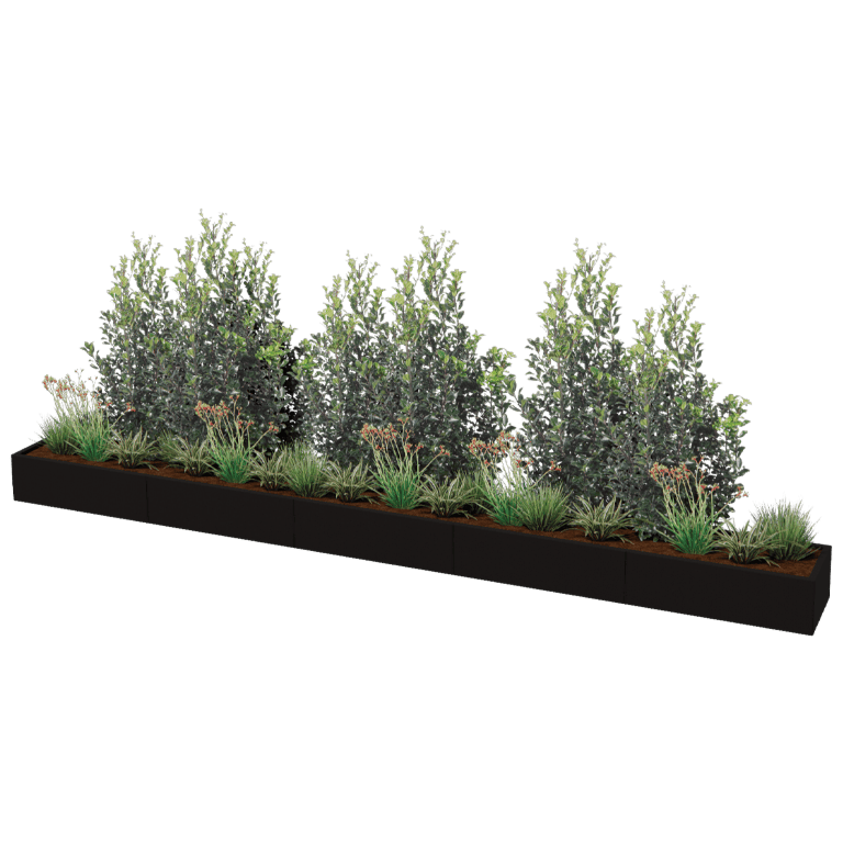 Esta jardinera es una jardinera modular de acero que se entrega en kit. La jardinera se construye a partir de paneles individuales y piezas de esquina. Las jardineras se pueden conectar completamente a ciegas. No hay elementos de fijación a la vista. Nuestro sistema modular también hace posibles dimensiones muy grandes. Mediante el uso de piezas angulares, se pueden conseguir formas únicas que no están disponibles de serie en ningún otro sitio. Consulte el manual para obtener más información.