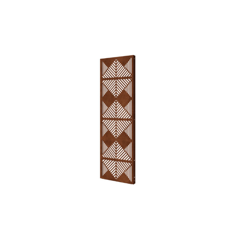 Este panel está fabricado con acero Corten-A de alta calidad, una aleación metálica compuesta de hierro, cobre, fósforo, silicio, níquel y cromo. La característica única del acero Corten es la formación de una densa piel de óxido, que actúa como capa protectora contra la oxidación. Esta capa impide que se oxide y protege el material interior de una mayor oxidación, mientras que el proceso de corrosión continúa lentamente.