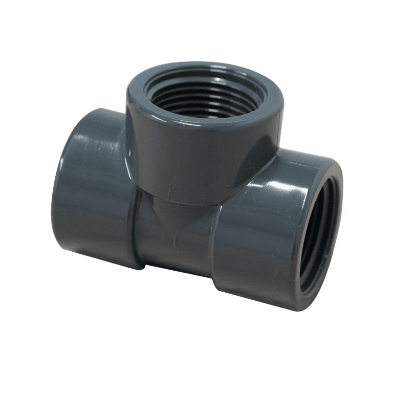 Este T de PVC de presión se utiliza para ramificar la tubería de agua en una mesa de agua. Gracias a las tres conexiones con rosca hembra de 1 pulgada, puedes conectar fácilmente varios componentes.