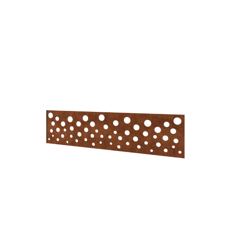 El panel mide 180 x 47,5 centímetros y está fabricado en una única pieza de acero corten con un grosor de material de 2 milímetros. Se entrega como un conjunto completo para que puedas colocarlo directamente sin complicaciones por partes separadas. Su diseño garantiza una separación sólida y duradera.